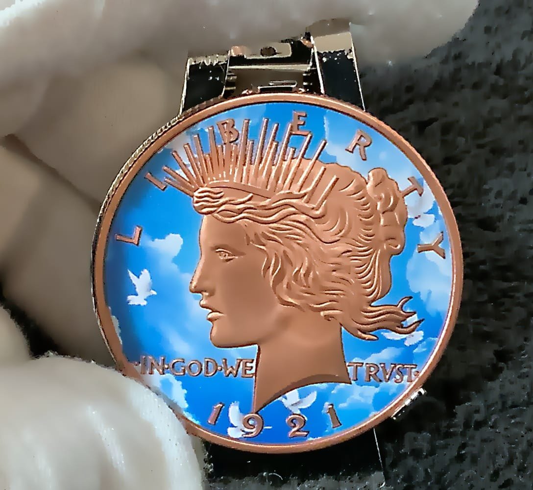 1921 1 OZ COPPER (COLORED) PEACE DOLLAR MONEY CLIP