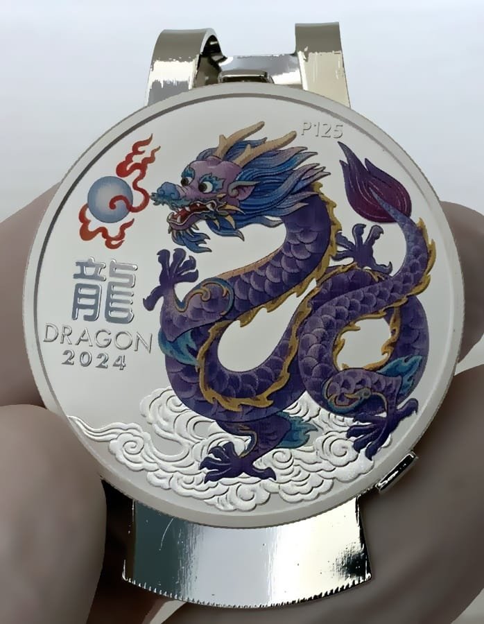 Introducing Blacks Money Clips featuring the stunning Year of the Dragon Silver Money Clip, adorned with the exquisite 2024 $1 1 oz Silver Lunar Colorized Lilac Dragon, Year of the Dragon Coin.