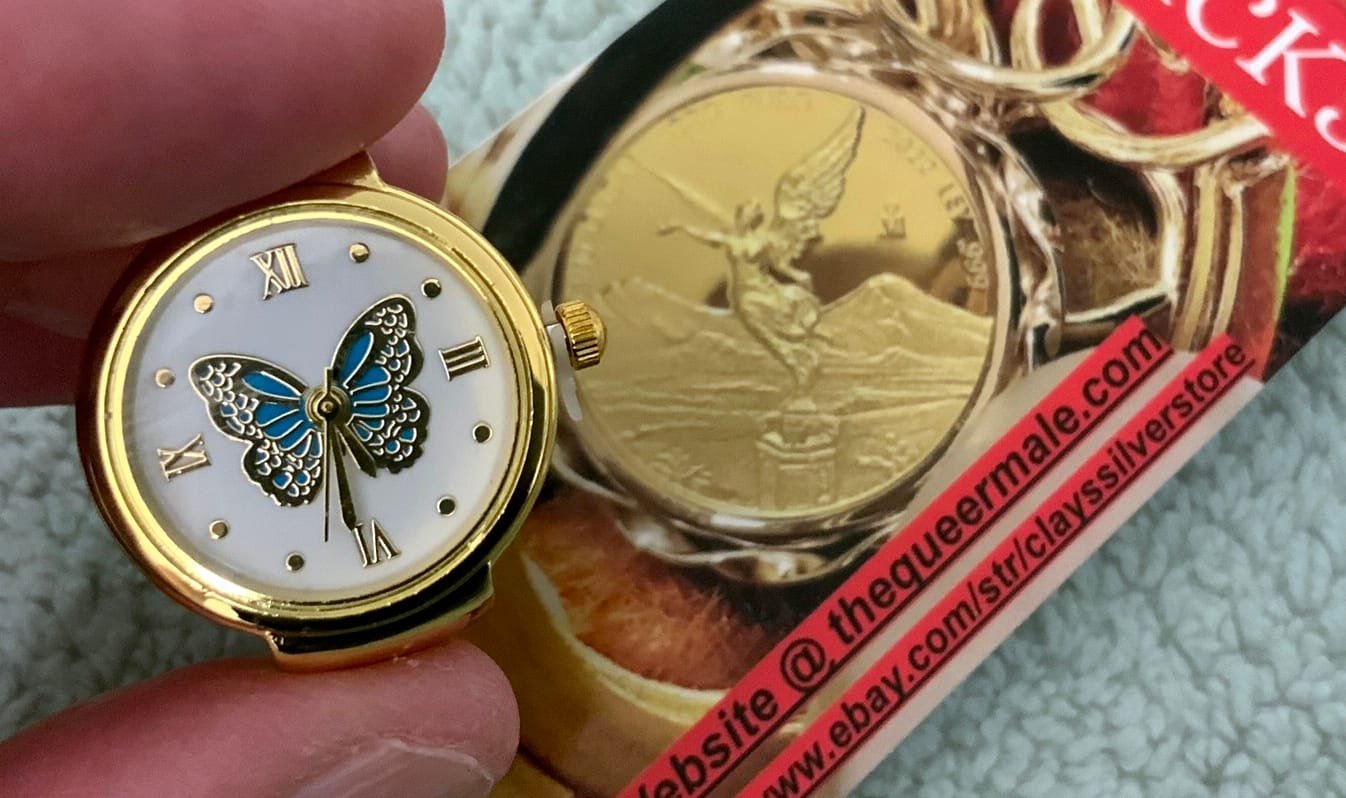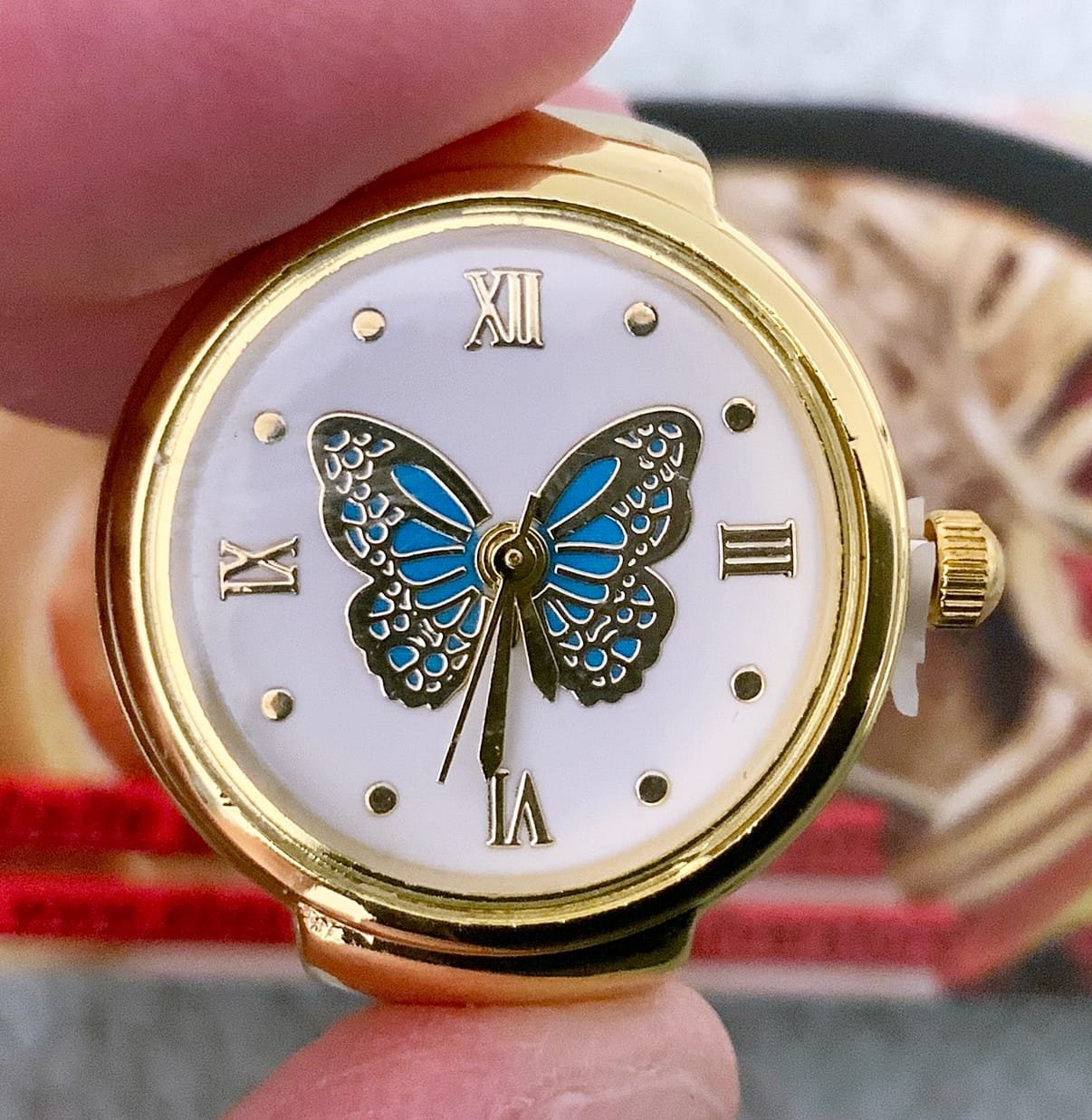 The Butterfly Ring Watch is a great way to get the feel and heft of a Ring Watch. Soon to be very popular is the Ring Watch and you will thrill to the handy/dandy feel of this Red Butterfly on a Ring Finger!