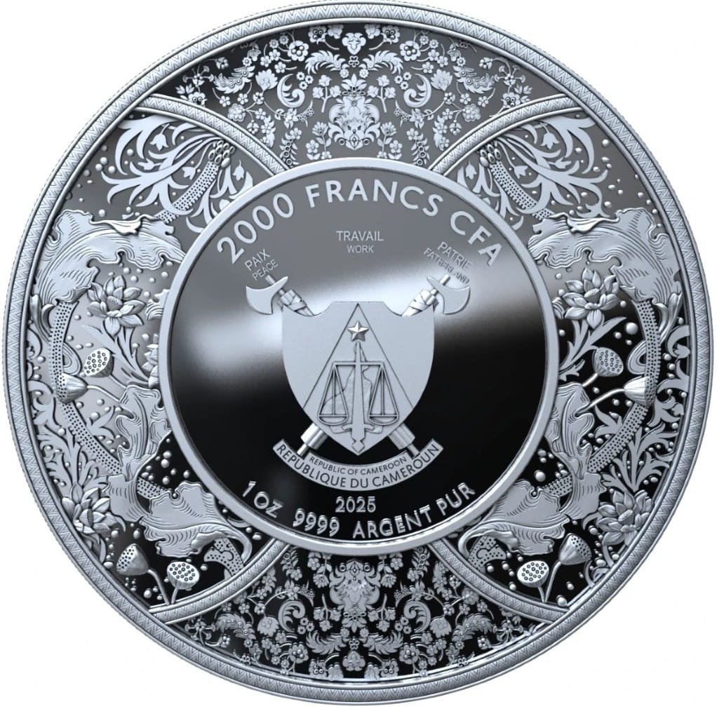On the Flip Side of the 1 Oz. Coin is the Year 2025 and the Coat Of Arms of the Republic of Cameroon, the Nation that Created this Masterpiece of Beauty through the auspices of The French Mint!