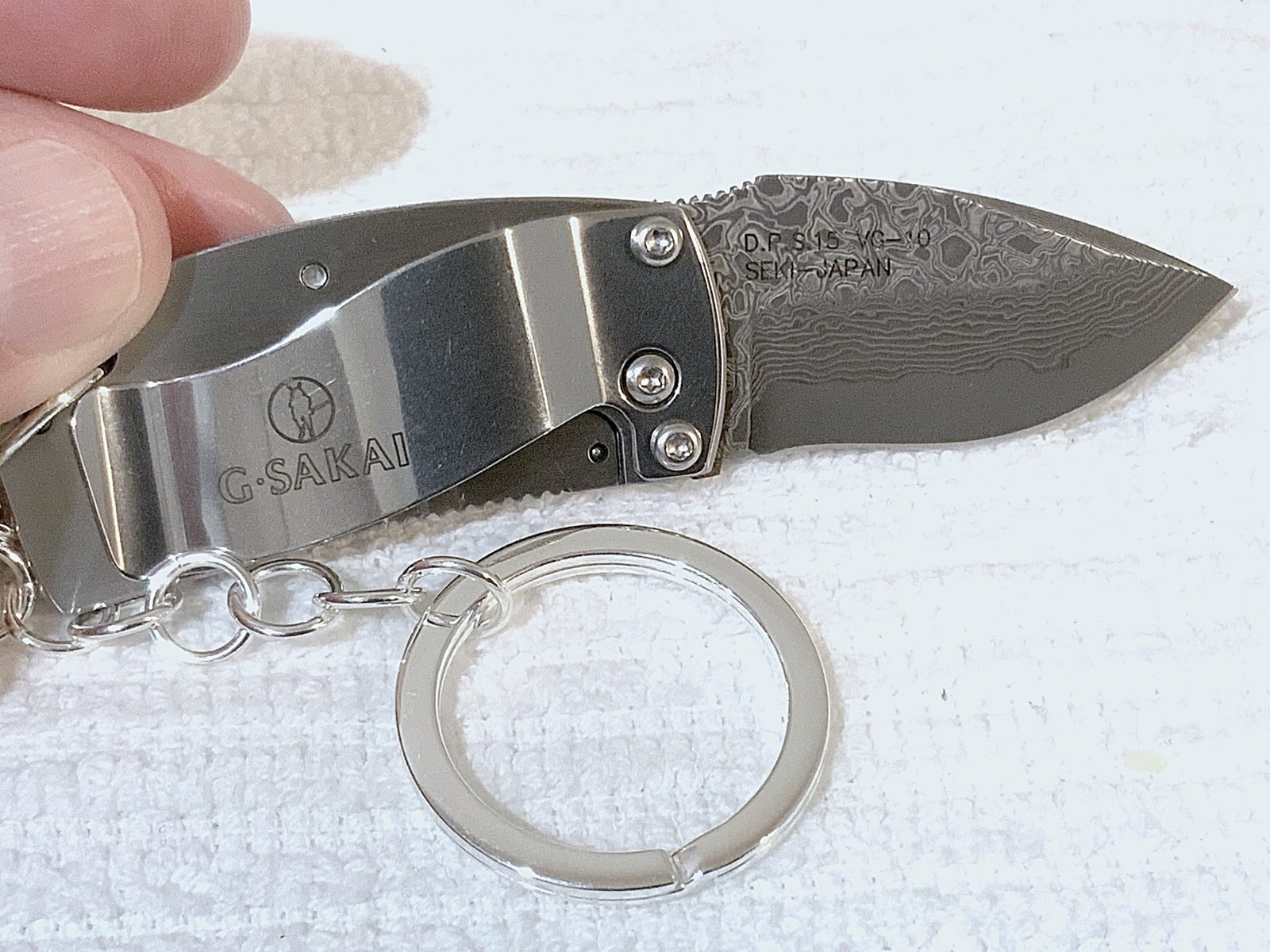 Blacks has further Constructed a Sterling Silver Keychain to Fit the Small Circular Opening of the G. Sakai item. Considering that The Money Clip could also be used as a Pocket Clip, for a sturdy hold in the Pocket for Keychain below. Adding, of course the Small Beautiful Sakai Damascus Knife.
