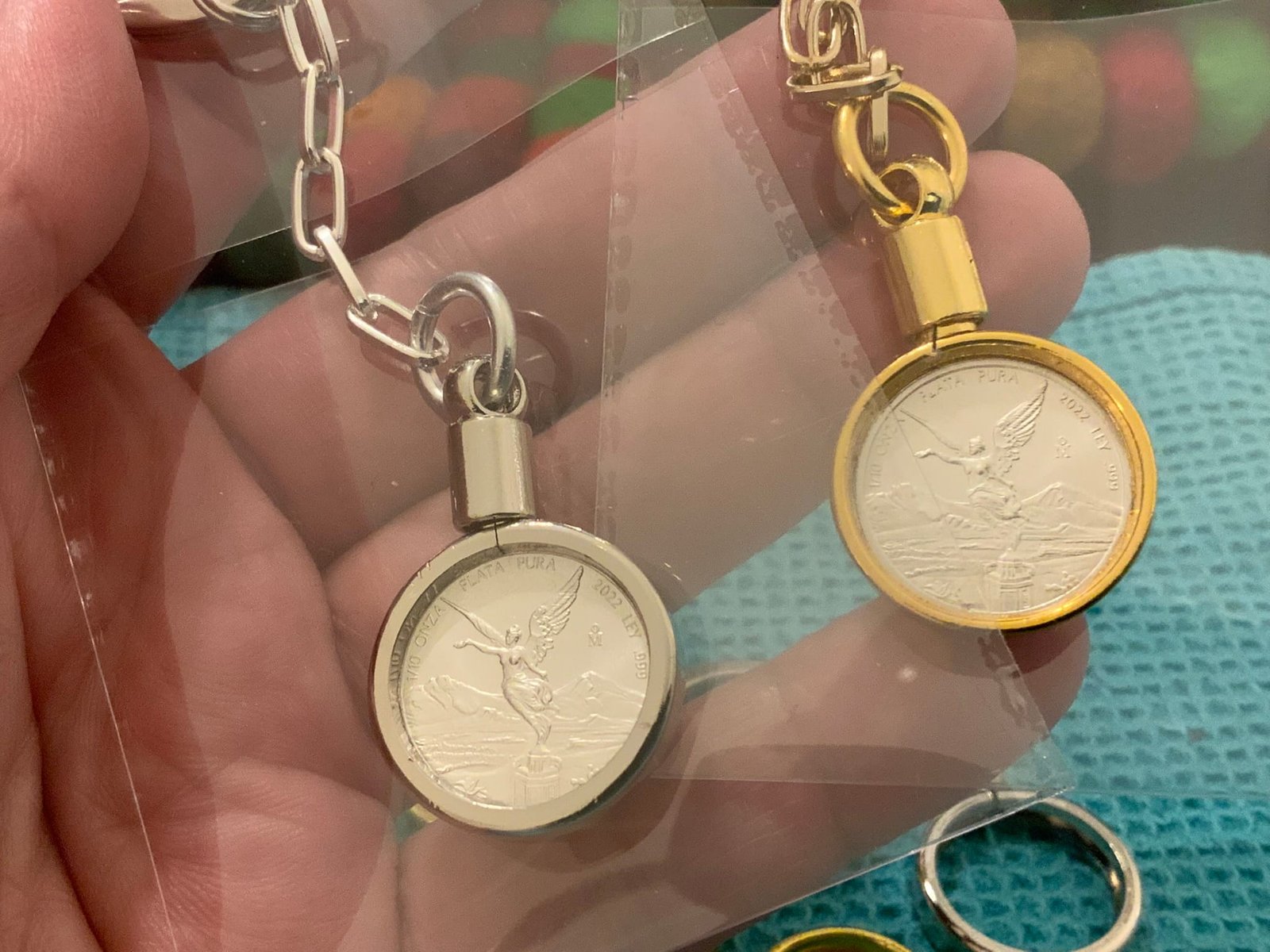 Look for the (40MM) (39MM) (32MM) (25MM) (20MM) in Dimensions for the Coin to Fit.  See Our Images of Coins for Ideas.  Buy a Coin and Make your Own Keychain.  DIY pure and simple.