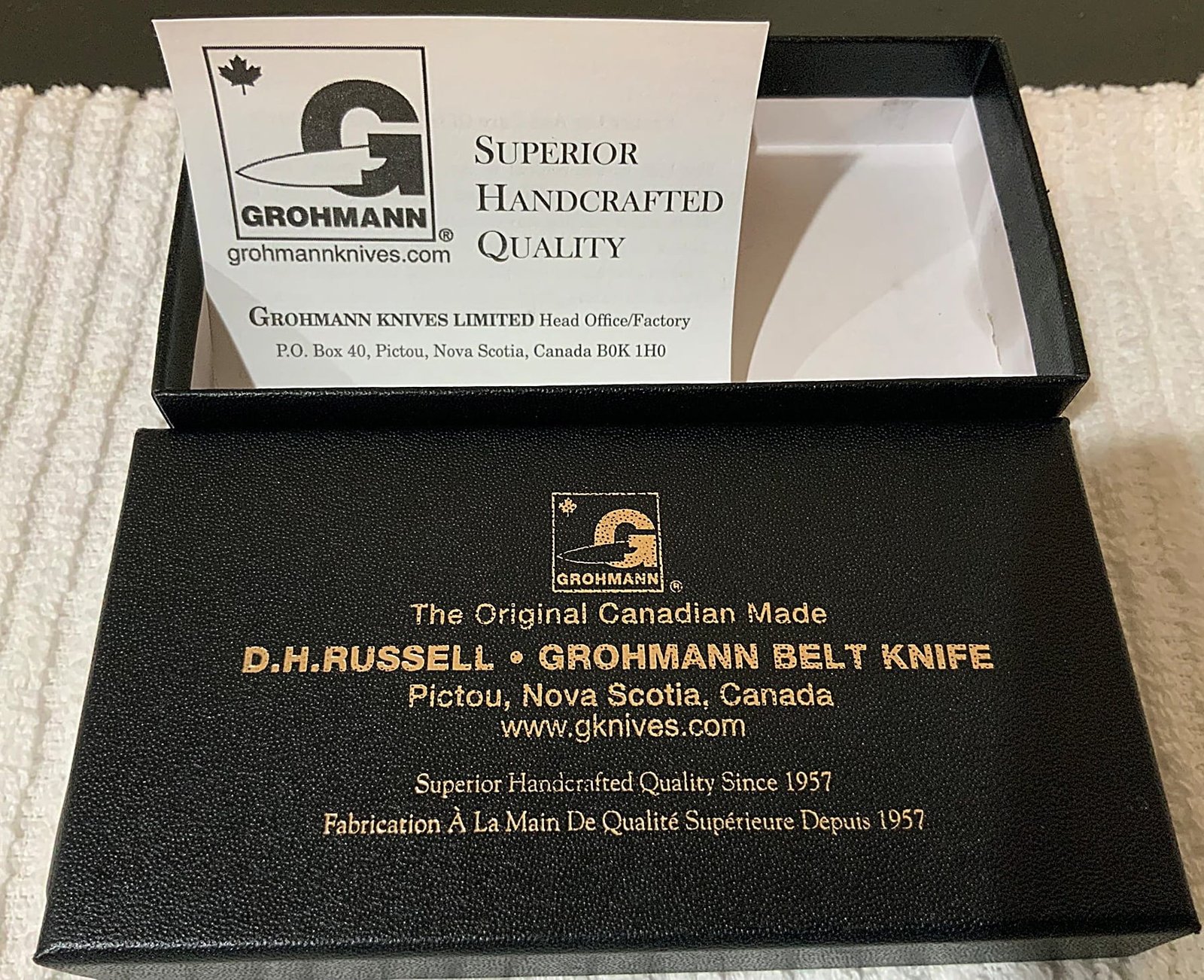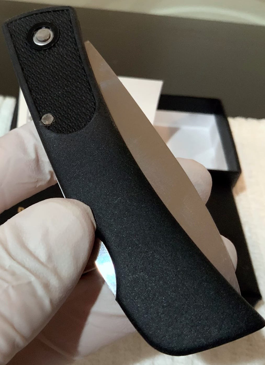 Black Svelte Grohmann Featherweight feels like something soft and light in the hand. The Zytel Handle is a nice Surprise when first holding it. Almost like a Velvet feel that makes this Extraordinary Grohmann knife simply one to Own and Have. This could someday be the Grohmann Company’s Standard Bearer Knife.