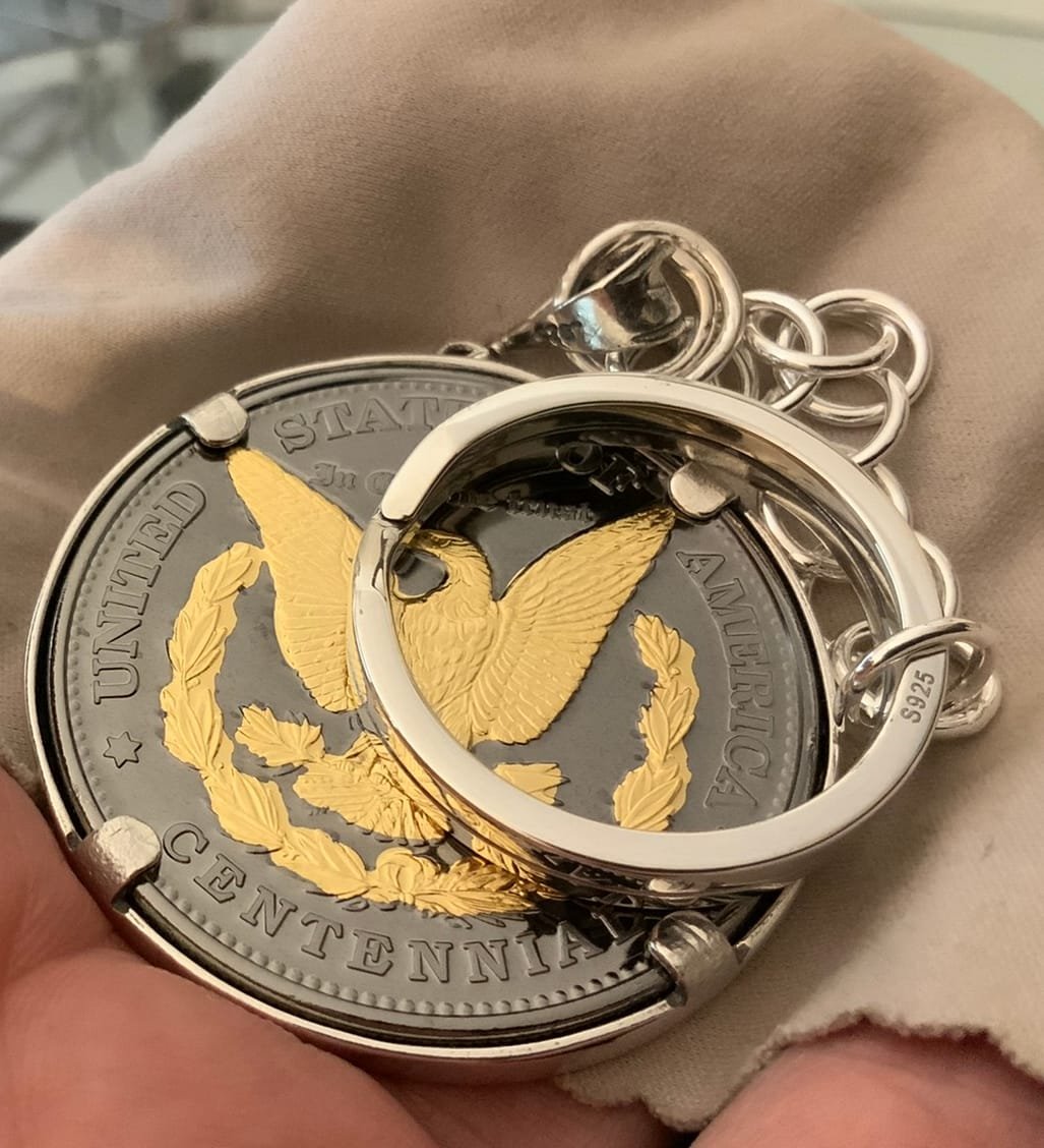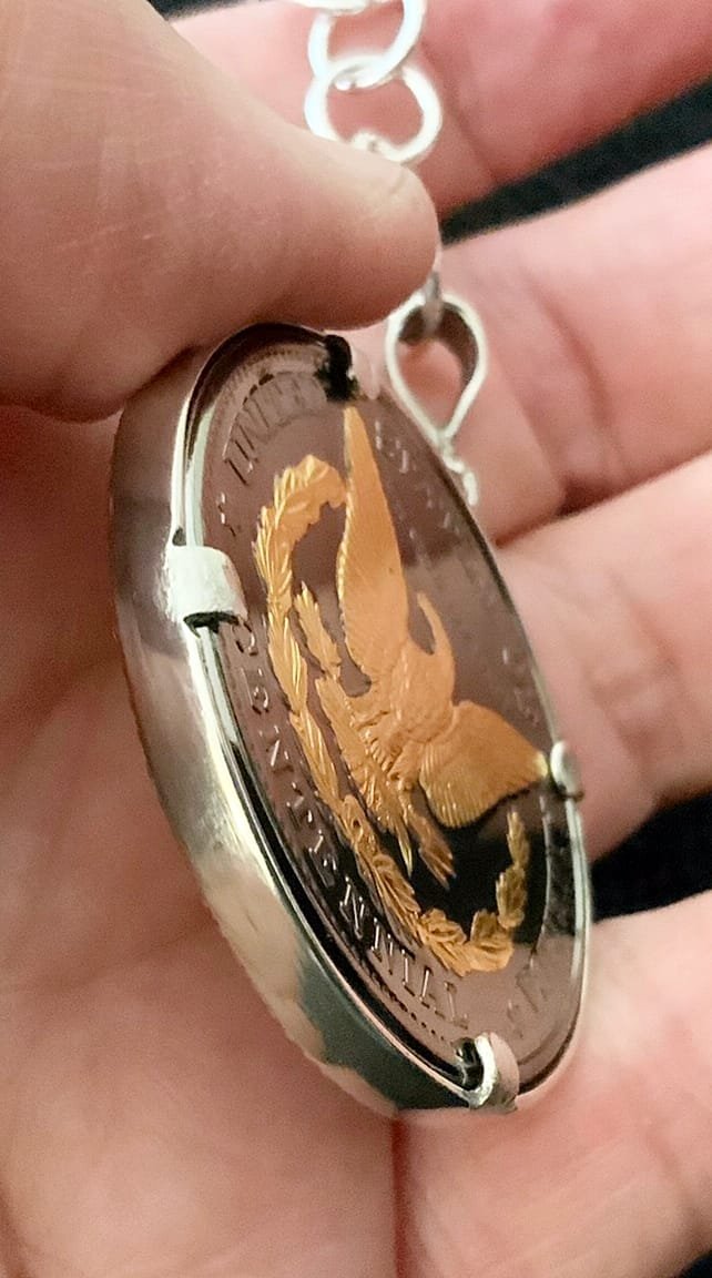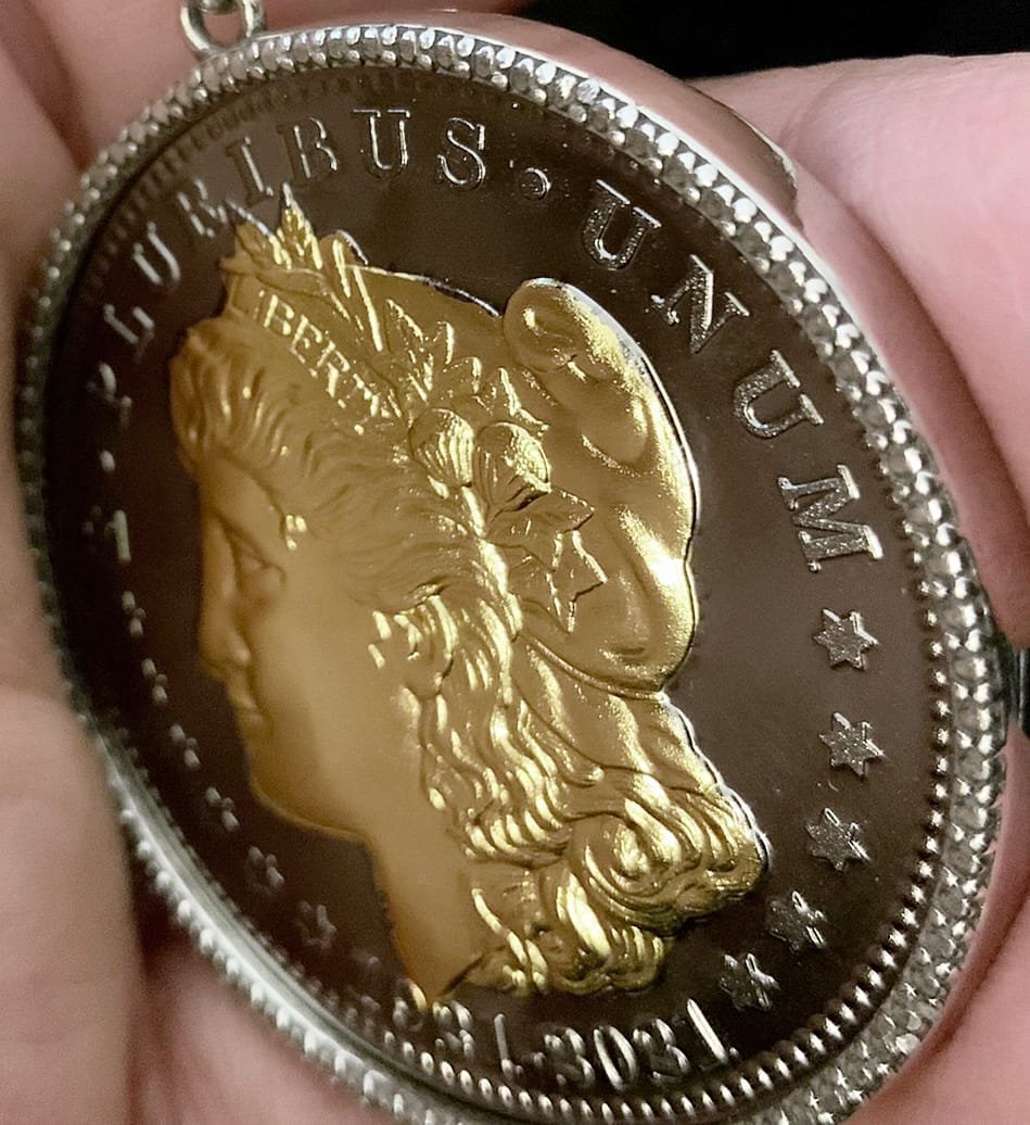 Stunning Morgan Ruthenium Black 24K Gold Leaf Accent’s THIS Beautiful Commemorative Morgan Coin honoring the 100th Anniversary Minting of the World Famous Morgan Dollar!