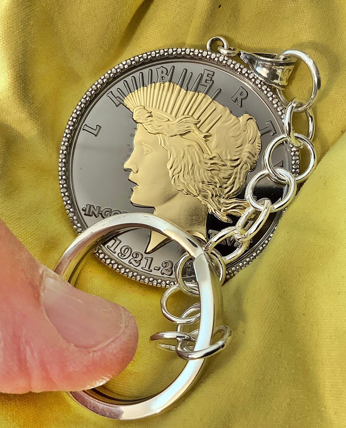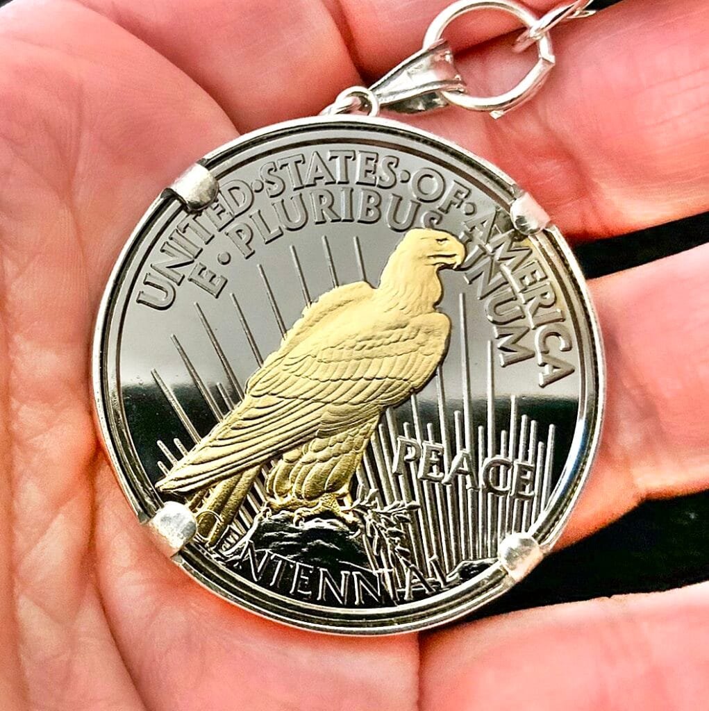 Here is your chance to enjoy this BLACK RUTHENIUM EDITION Peace Dollar design non-monetary Commemorated Coin. Each of Black’s Morgan Ruthenium’s weigh a full One Ounce (1 OZ Nickel Silver) and measures a large 39mm in size. To commemorate the Peace Dollar’s last Mint (1921) in this 100th Anniversary Double Dated 1921-2021 Centennial tribute. The legendary Peace Silver Dollar is widely hailed as the Queen of America’s Coins. The coin is coated with Black Ruthenium, which is a type of platinum metal that looks like a dark platinum, but is 100 times Rarer. Ruthenium is a chemical element with the symbol RU & Atomic #44. It is a rare transition metal belonging to the platinum group of the periodic table.