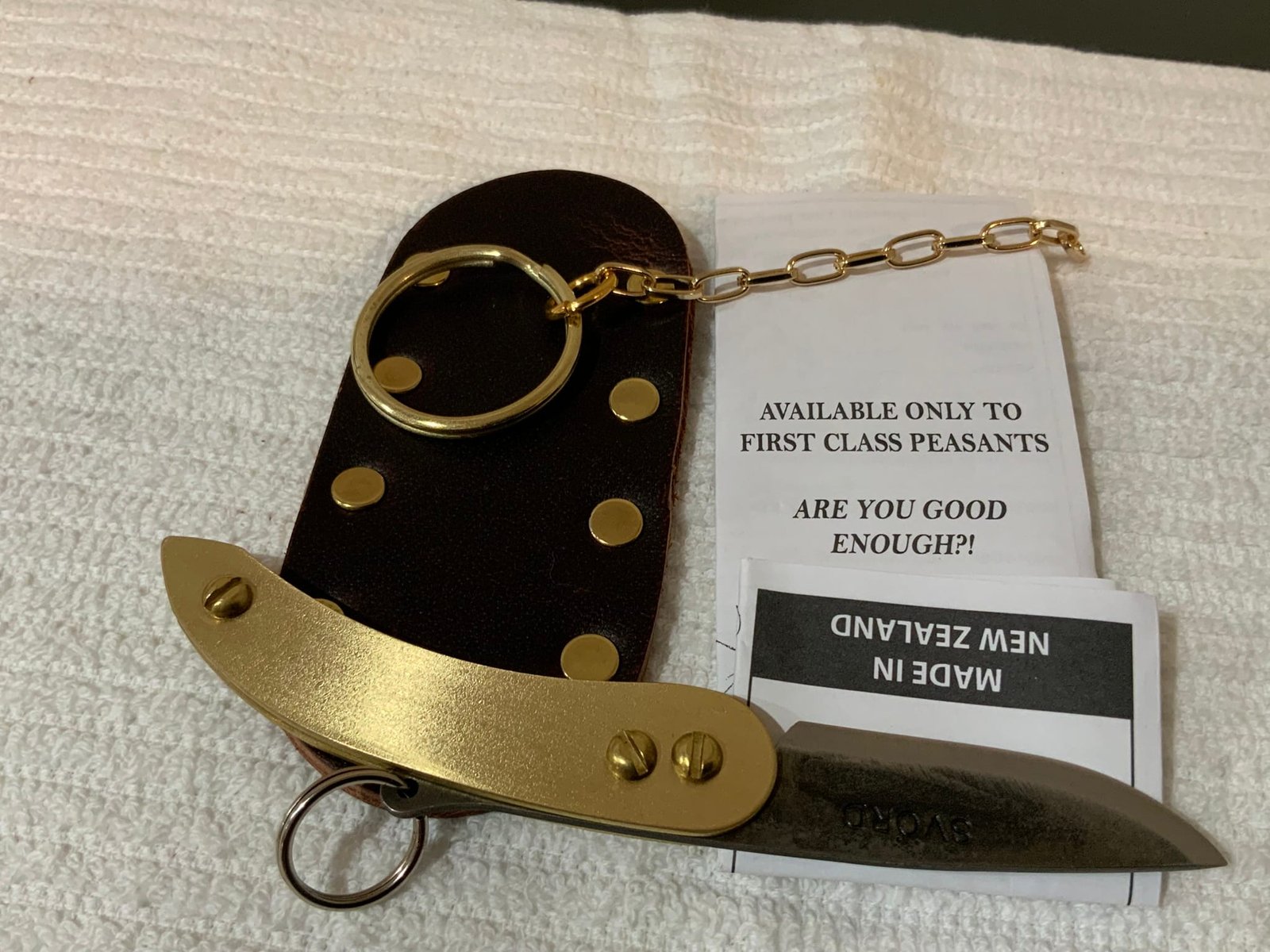 Svord Peasant Brass Carbon Steel Knife (Gold Plated Keychain & 30MM Ring Added)