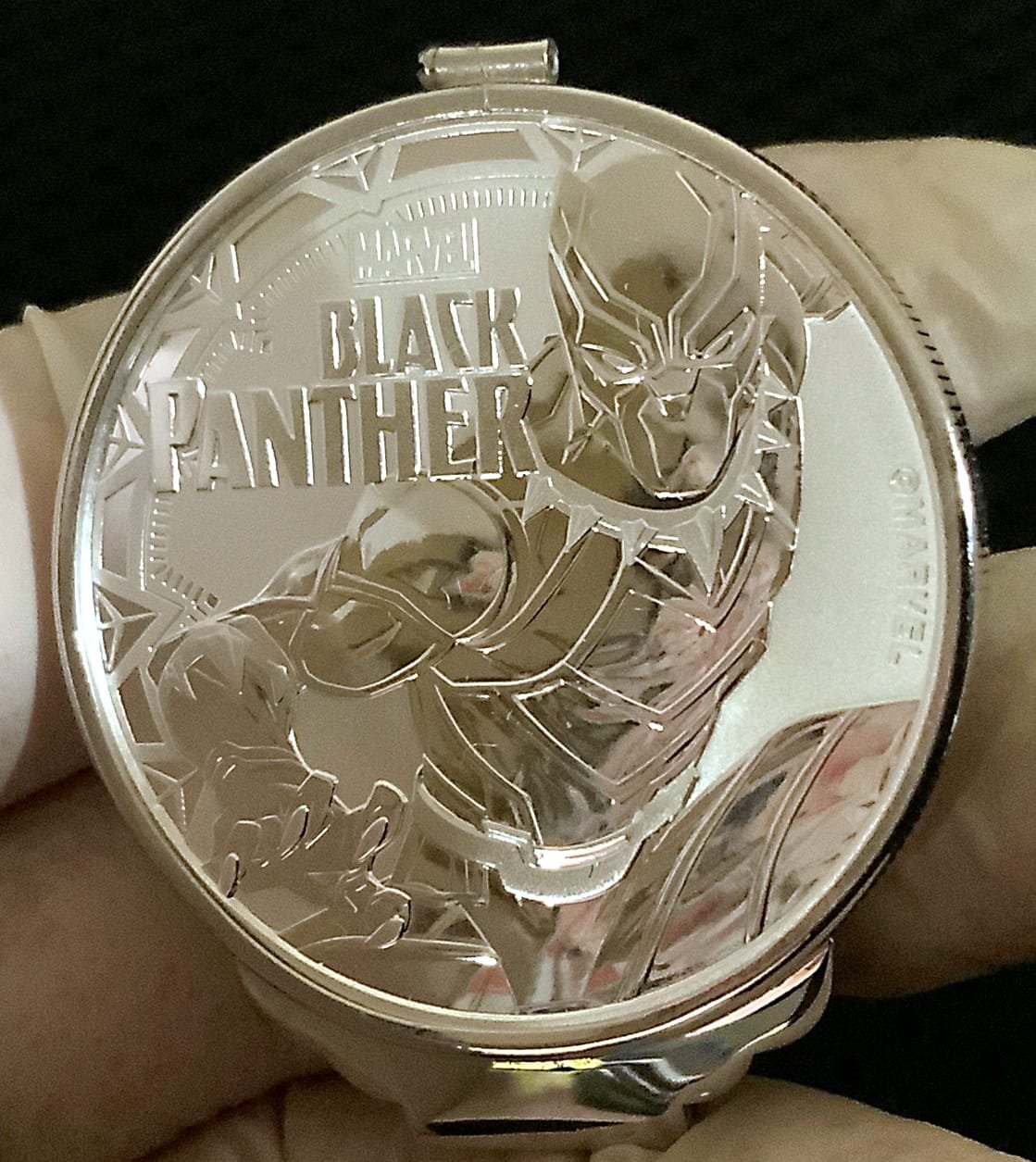 This coin follows the 2018 1 oz Tuvalu Thor Marvel Series Silver Coin and is coming just before the new Marvel movie Black Panther. According to Marvel movies, Black Panther in his full Black Panther garb, has enhanced speed, strength, night vision, and healing ability. Additionally, he can summon short, cat-like Adamantium claws from his knuckles by balling his hands into fists.